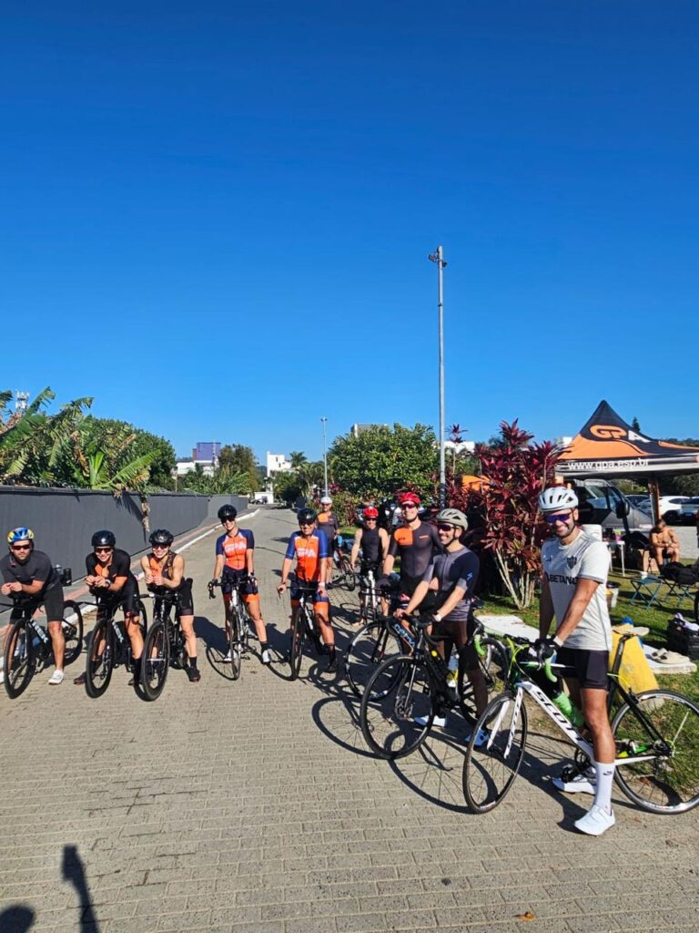No dia 20/09/2025, realizamos o treino simulado para o Ironman 70.3 Florianópolis nos Ingleses. A GPA montou a tenda de apoio dentro do Oceania Park Hotel, exatamente onde ficará a transição oficial da prova.