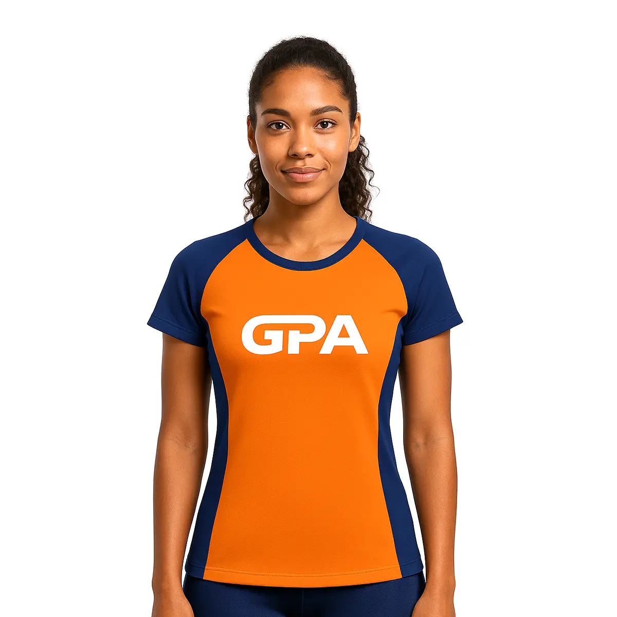 Camiseta baby look feminina de corrida leve e respirável, feita em 100% poliamida para máximo conforto e secagem rápida.