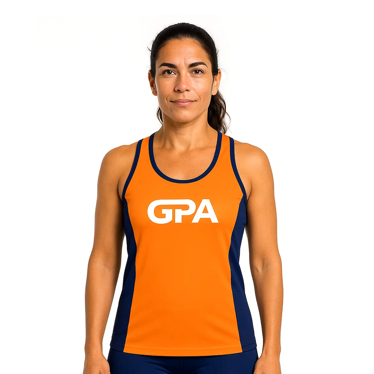 Camiseta regata feminina de corrida leve e respirável, feita em 100% poliamida para máximo conforto e secagem rápida.
